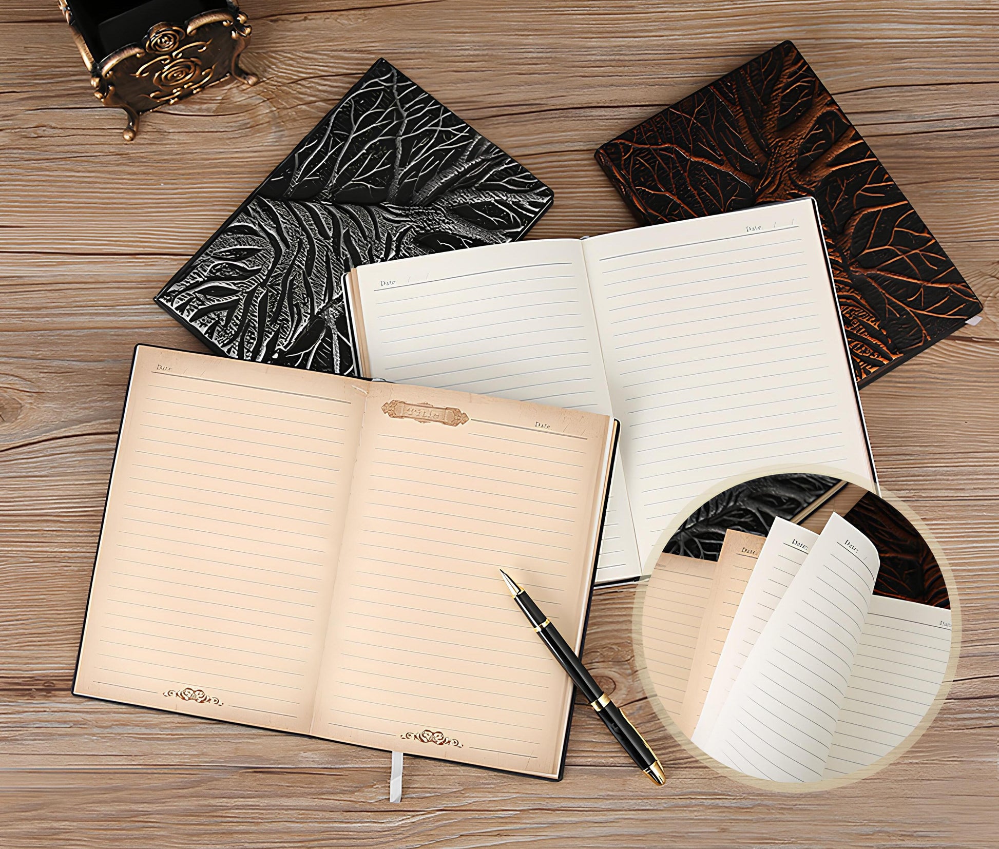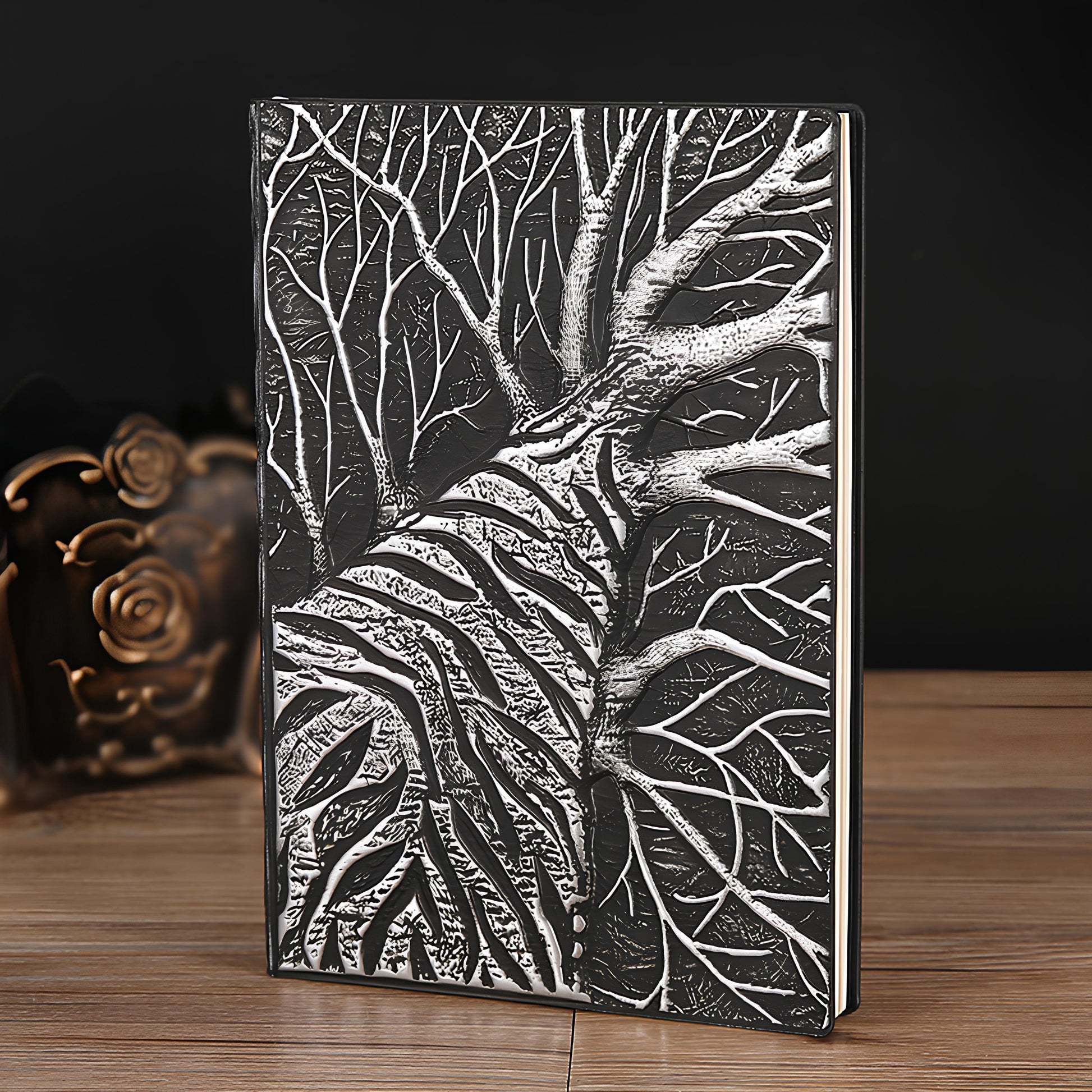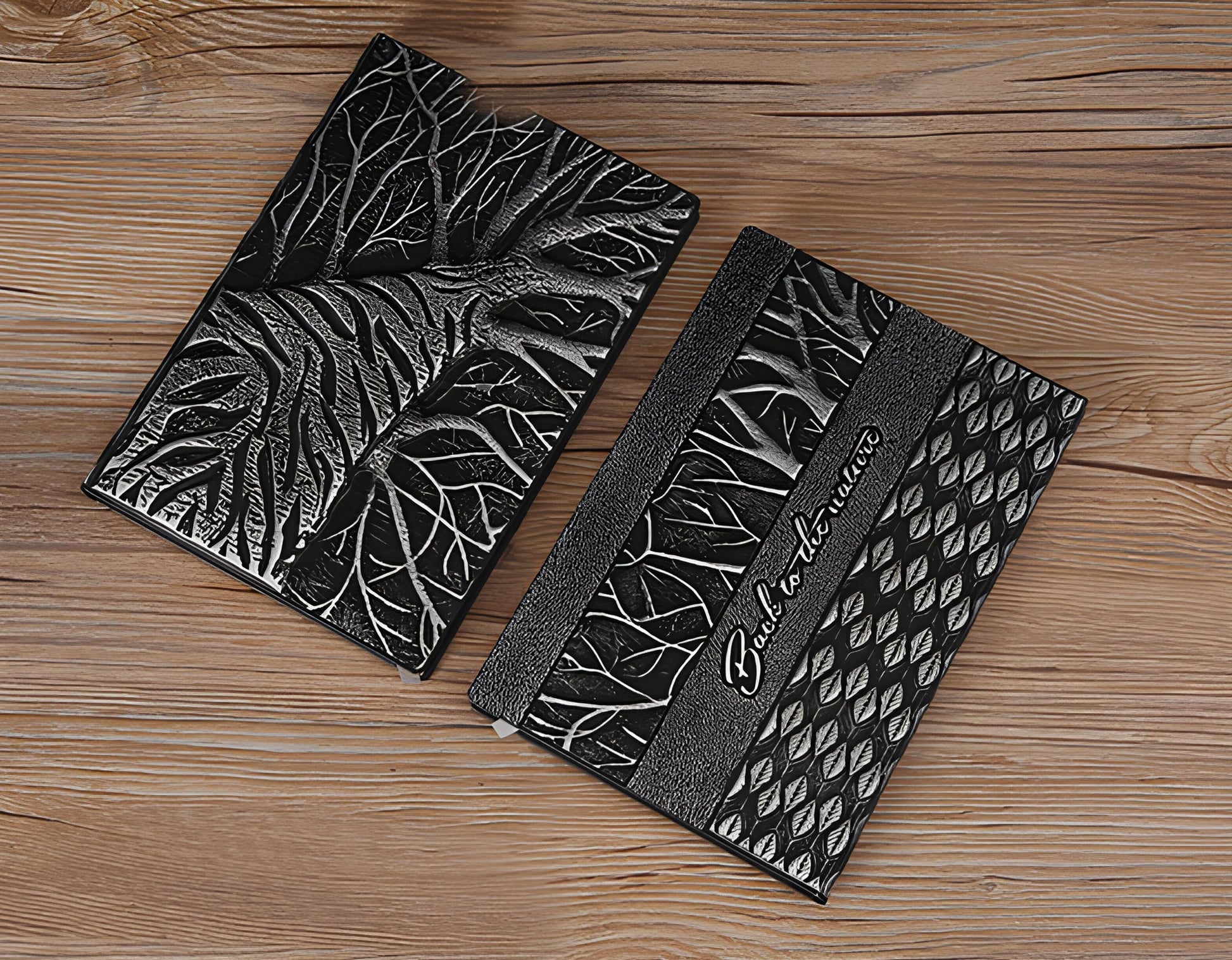 3D EMBOSSED LEATHER COVERED TRAVELLERS JOURNAL - SEQUOIA SILVER - A5 SIZE