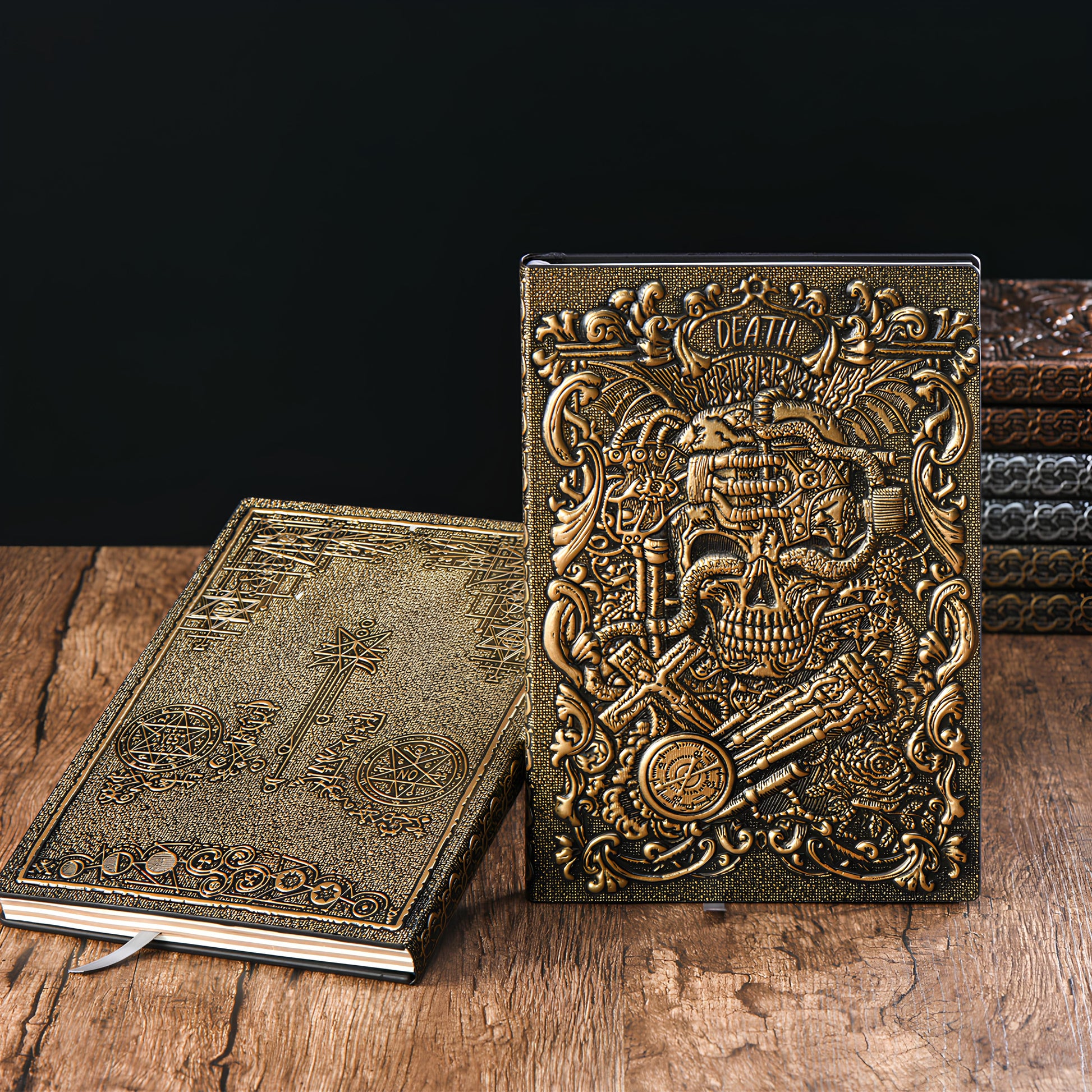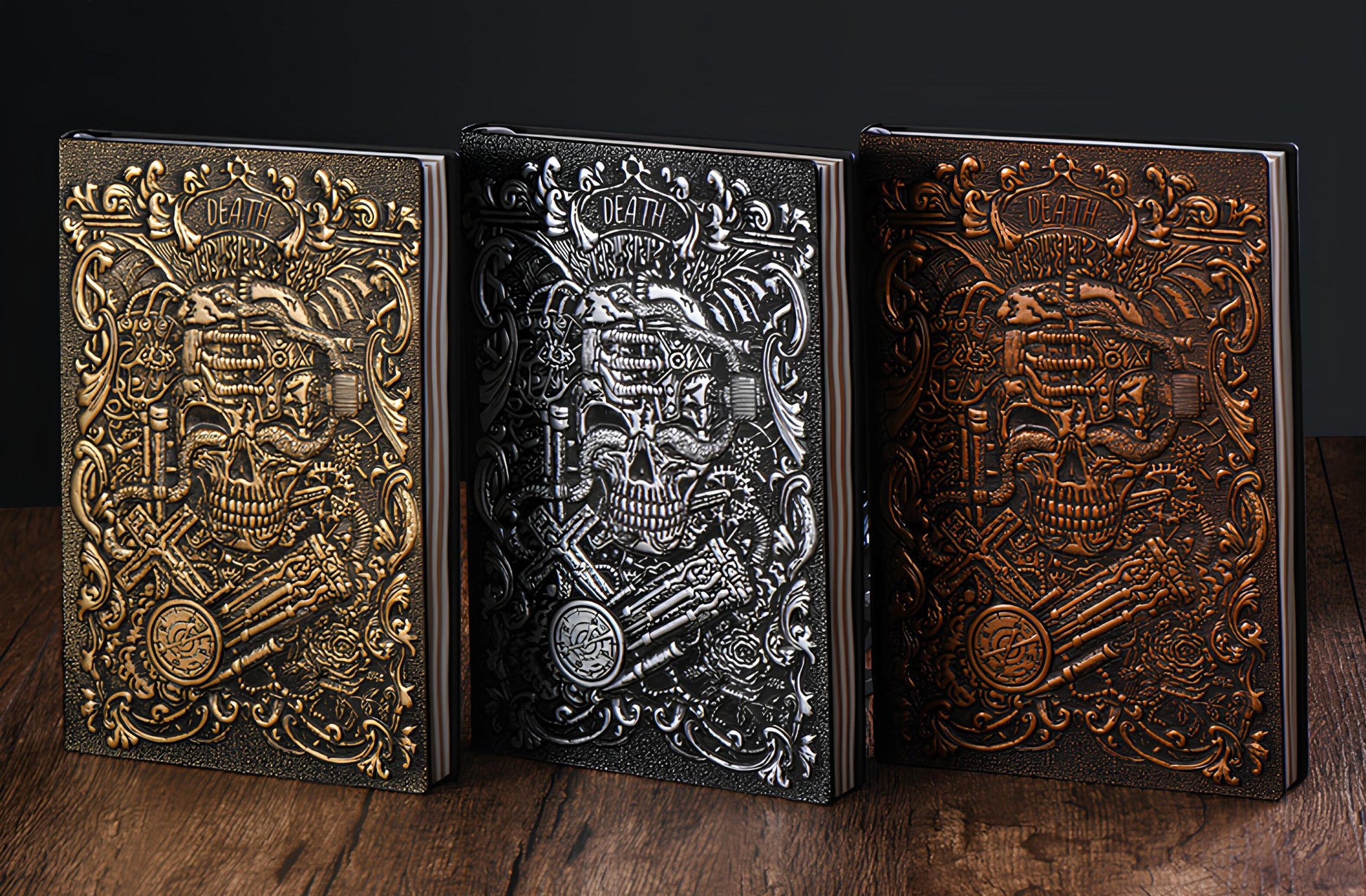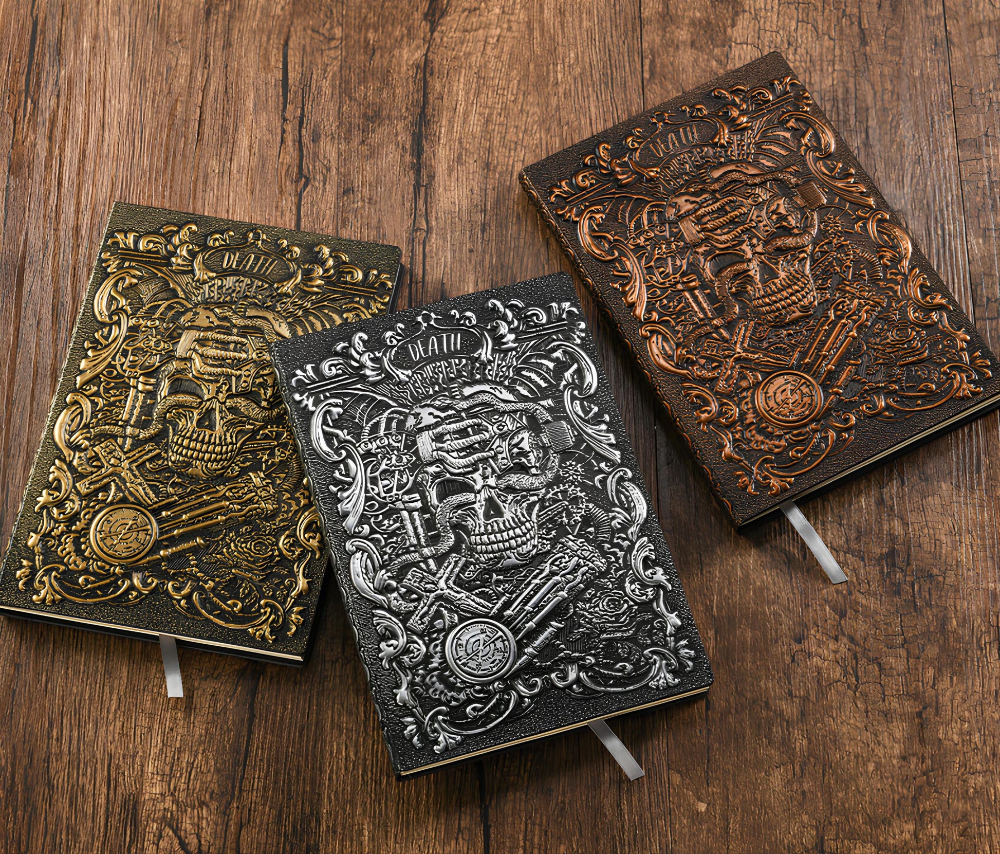 3D EMBOSSED LEATHER COVERED TRAVELLERS JOURNAL - SKULL BRONZE - A5 SIZE