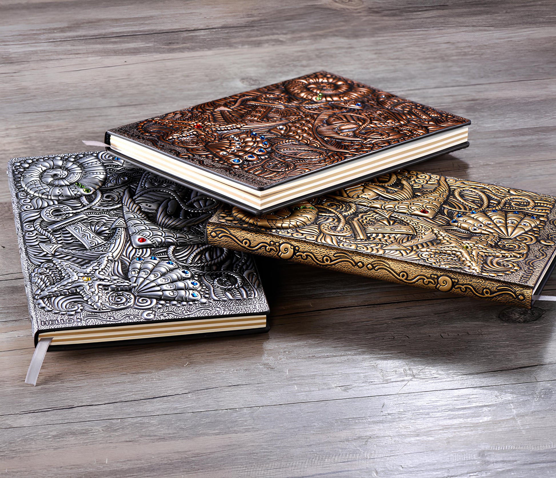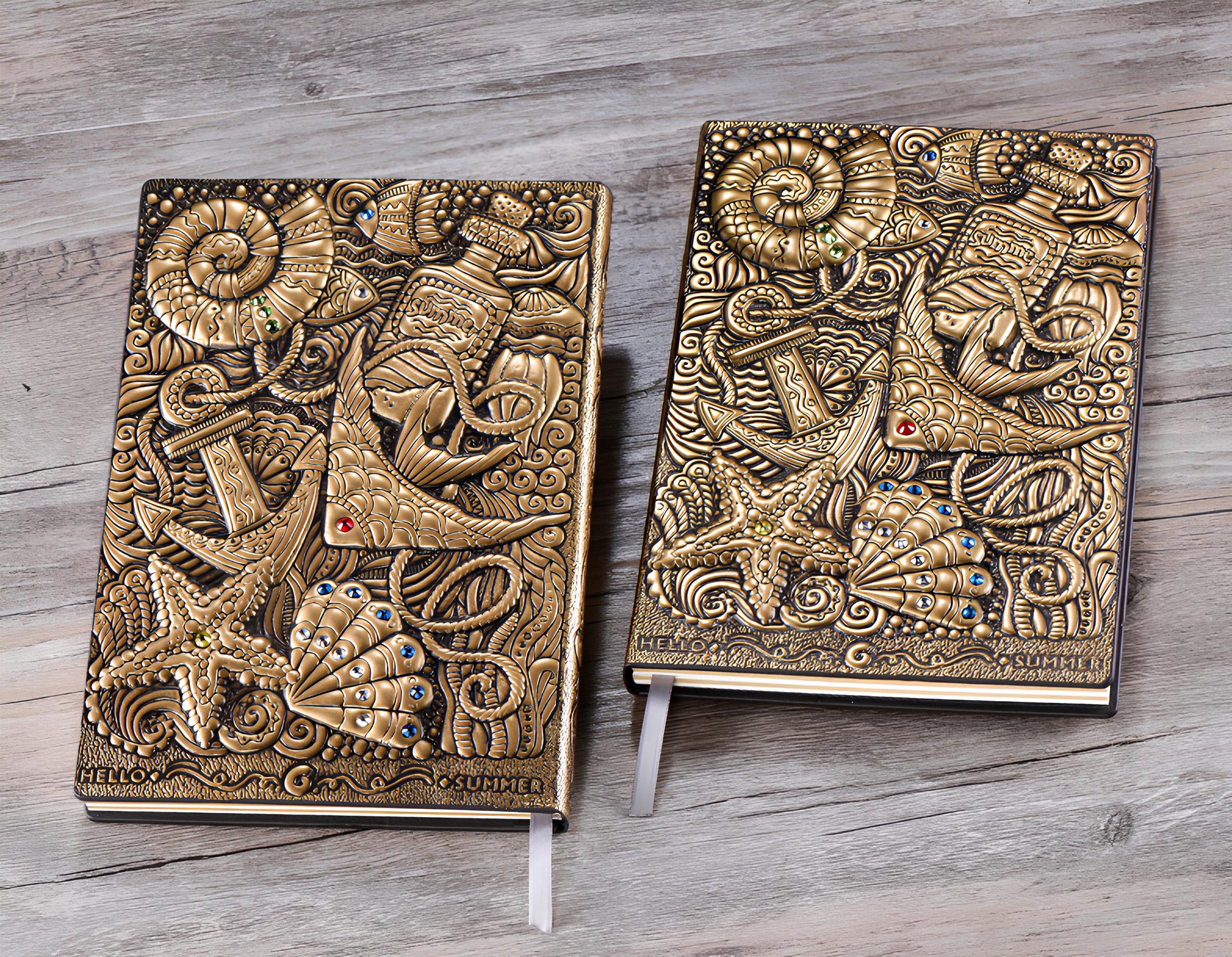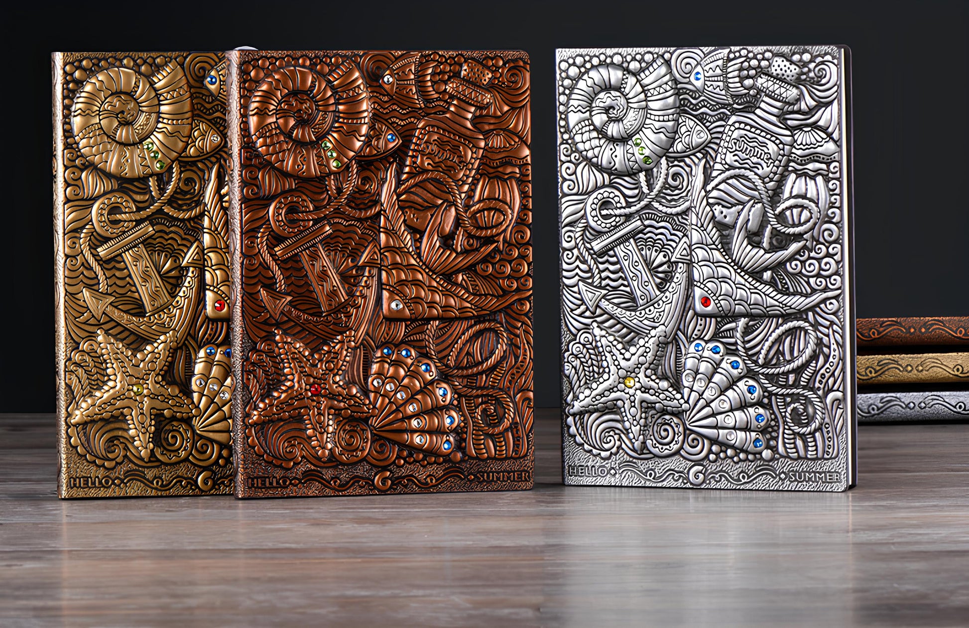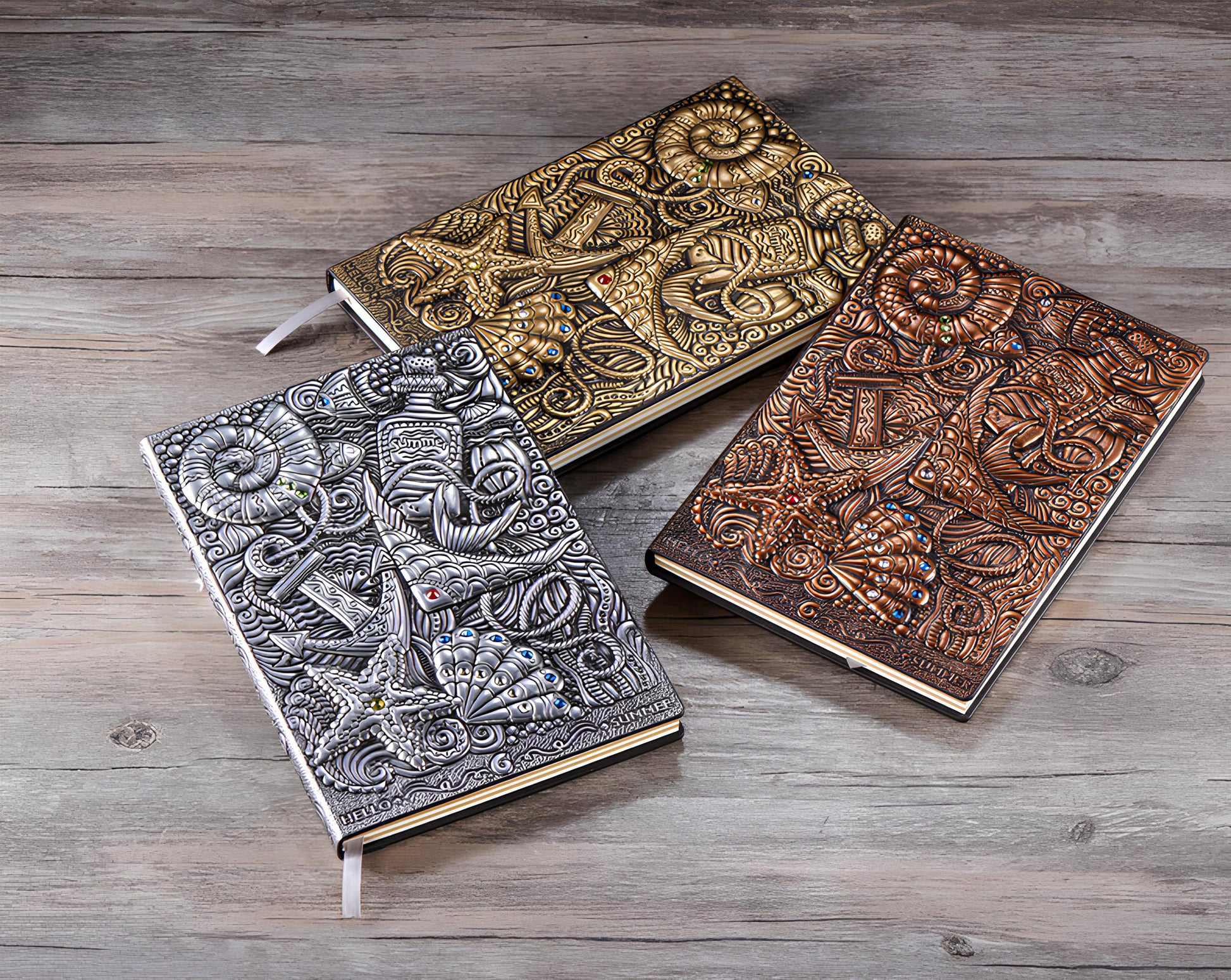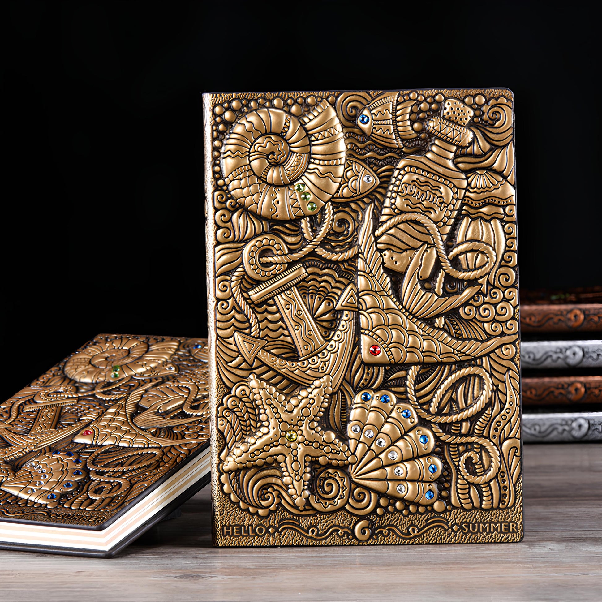 3D EMBOSSED LEATHER COVERED TRAVELLERS JOURNAL - UNDERWATER BRONZE - A5 SIZE