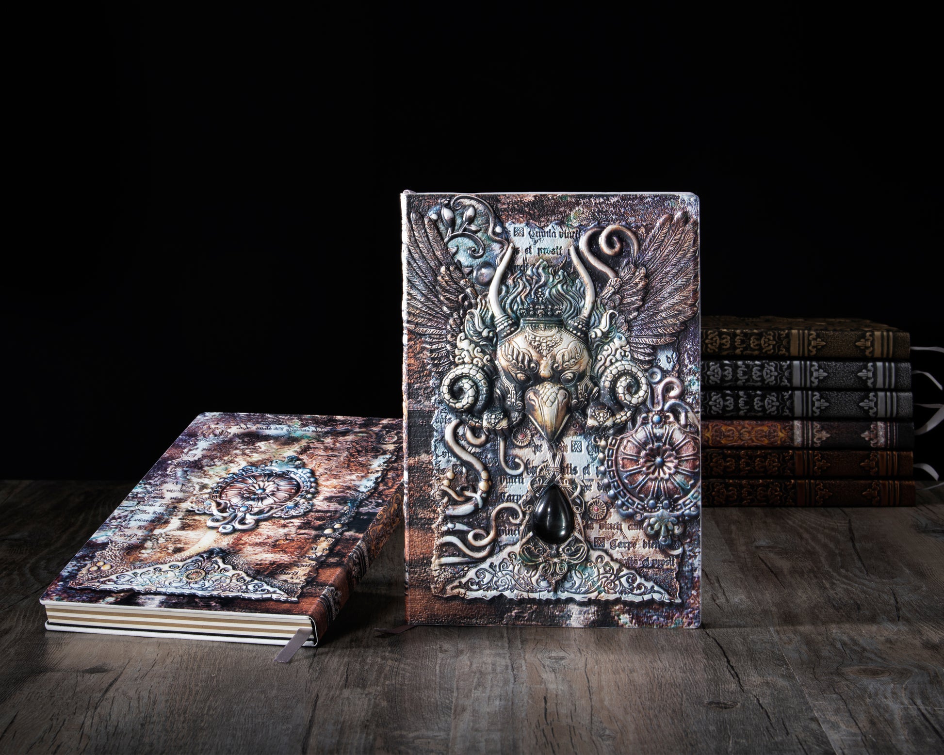 3D EMBOSSED LEATHER COVERED TRAVELLERS JOURNAL - VULTURE MULTI-COLOR - A5 SIZE